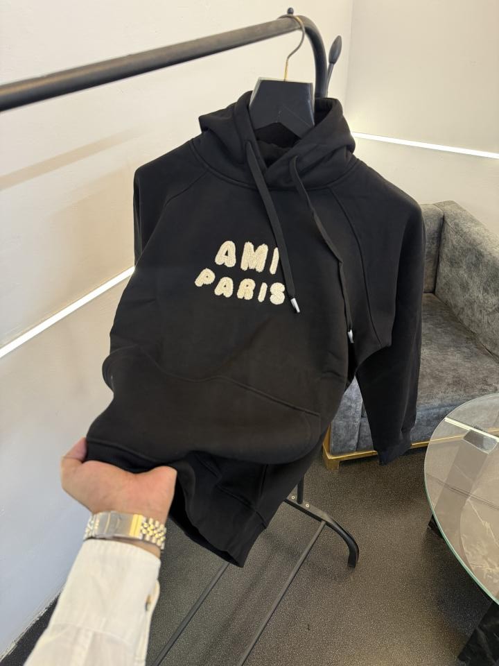 ? *Ami paris relax fit oversize winter hooded sweatshirt with inside fleece and embroidery branding in front now in stock*?