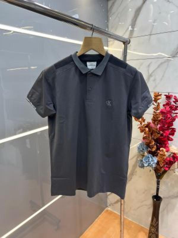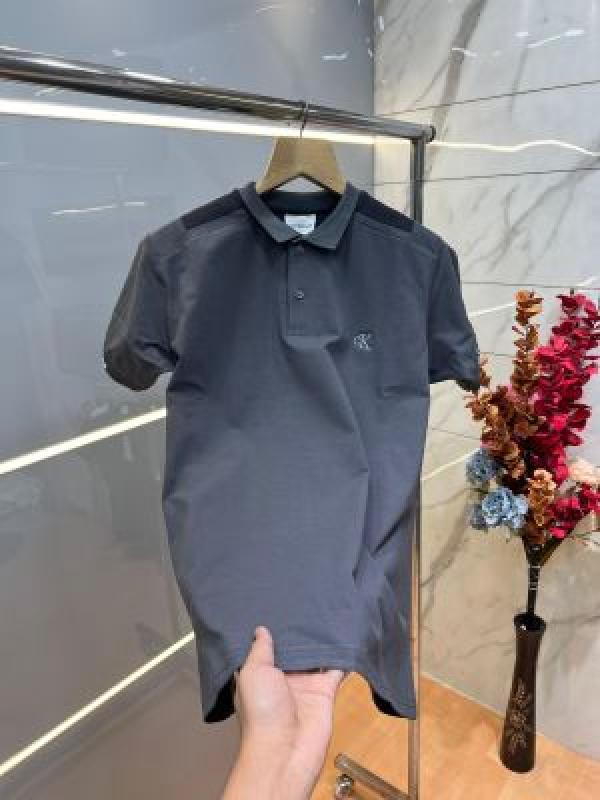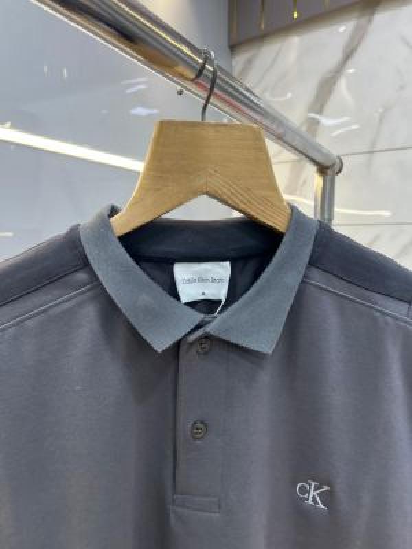 Home T-Shirts Calvin Klei n Grey Premium Imported 240 GSM Interlock Lycra Fabric Polo Tshirt with Shoulder Design and Embroidered Logo 4011