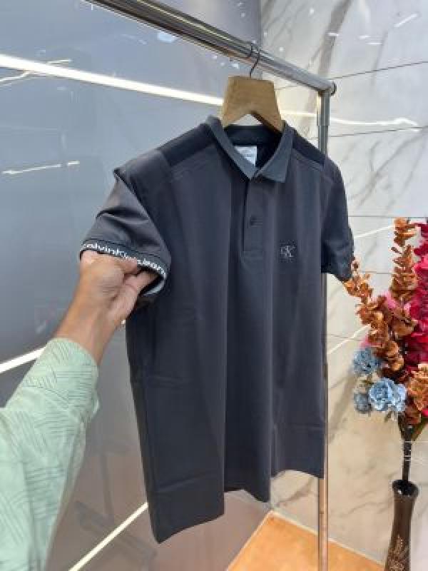 Calvin Klei n Grey Premium Imported 240 GSM Interlock Lycra Fabric Polo Tshirt with Shoulder Design and Embroidered Logo 4011