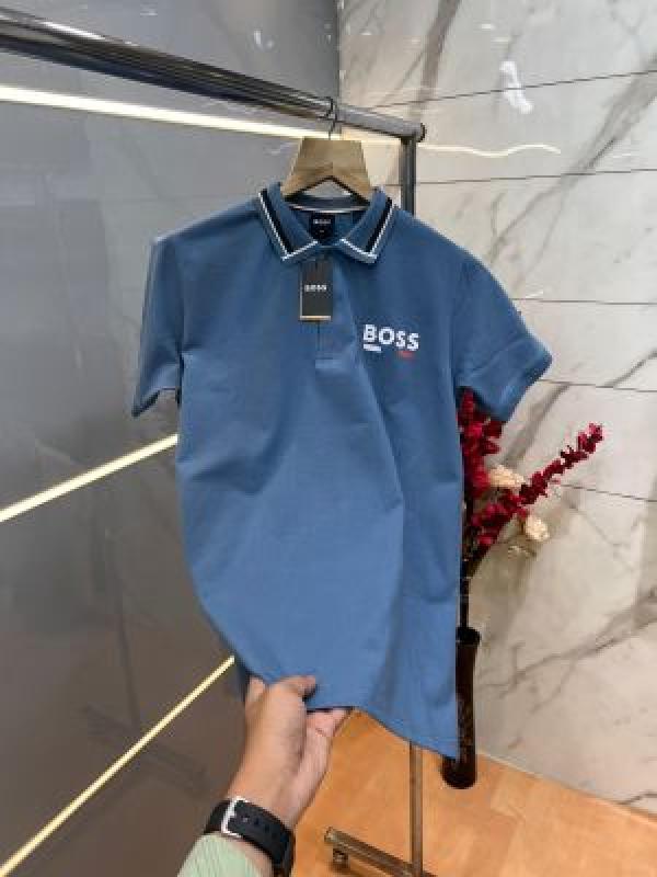 Home T-Shirts Hugo Bos s Premium Imported 240 GSM Interlock Lycra Fabric Polo Tshirt with Collar Design and Emboss Logo 4001