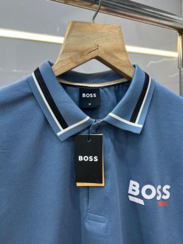 Hugo Bos s Premium Imported 240 GSM Interlock Lycra Fabric Polo Tshirt with Collar Design and Emboss Logo 4002