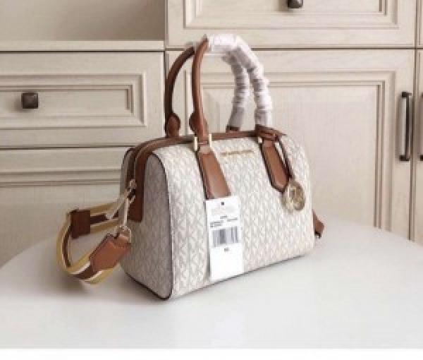 Michael_Kors Cynthia Signature Satchel Bag With Dust Bag (Apricot)